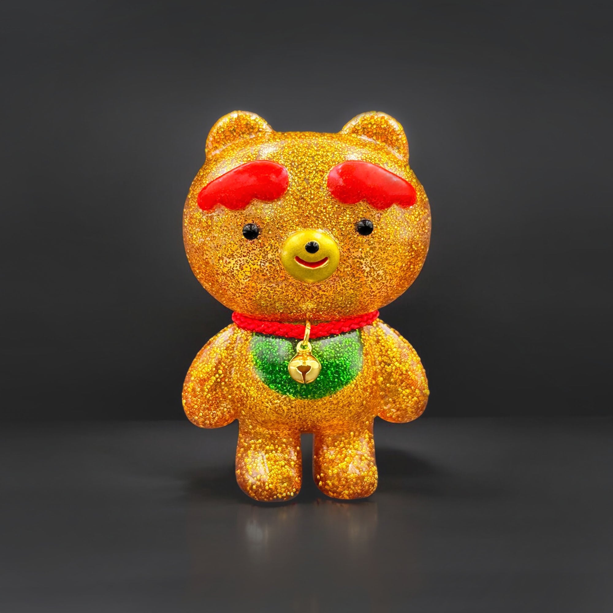 福を呼ぶ、愛らしい招き猫クマソビくんをぜひお迎えください♡(手作り首輪付き)