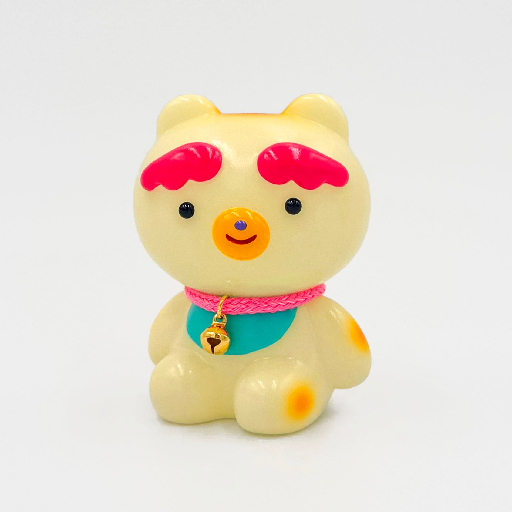 全体はパステルカラーで、ピンクラメの首輪がポイントの、柔らかい雰囲気の招き猫です。
