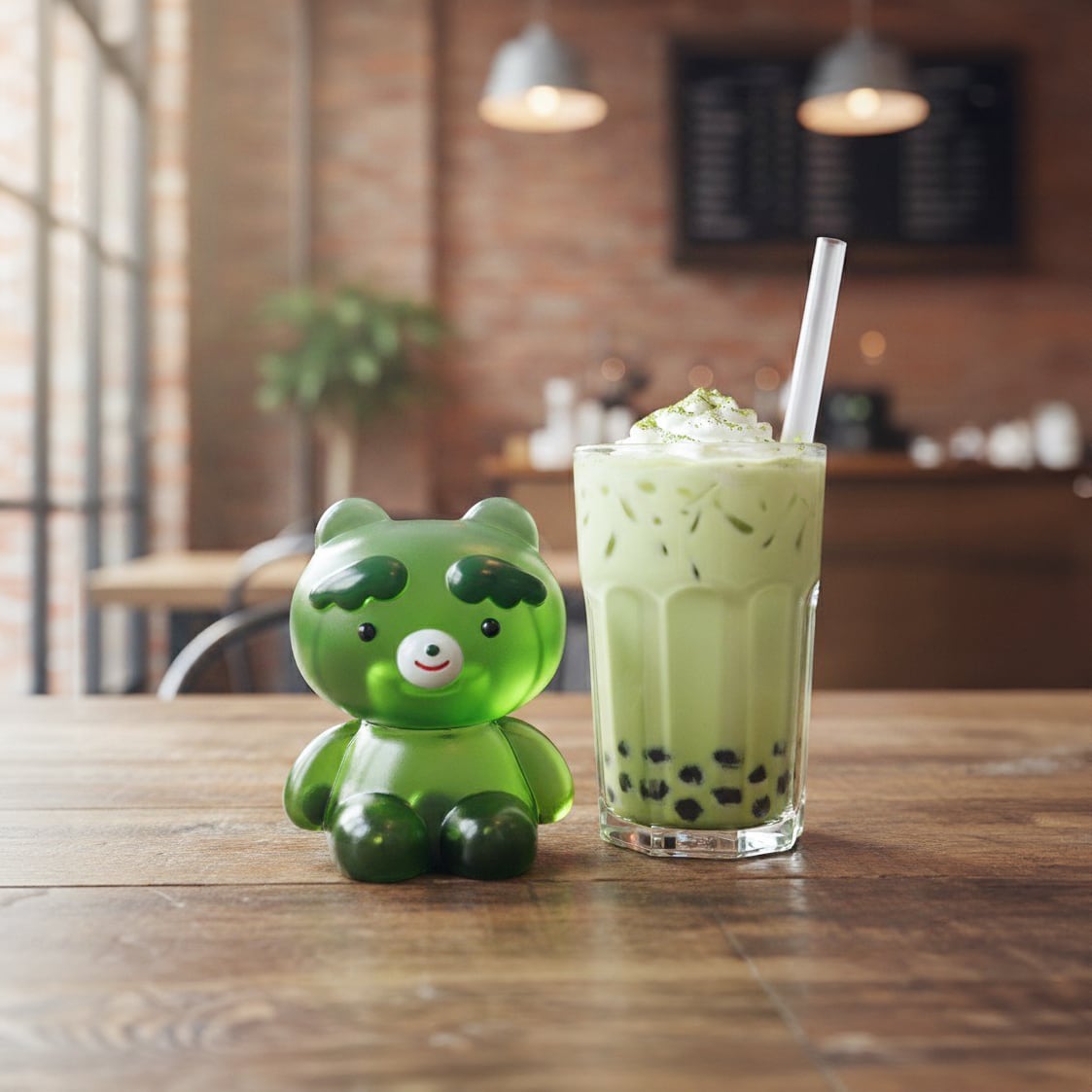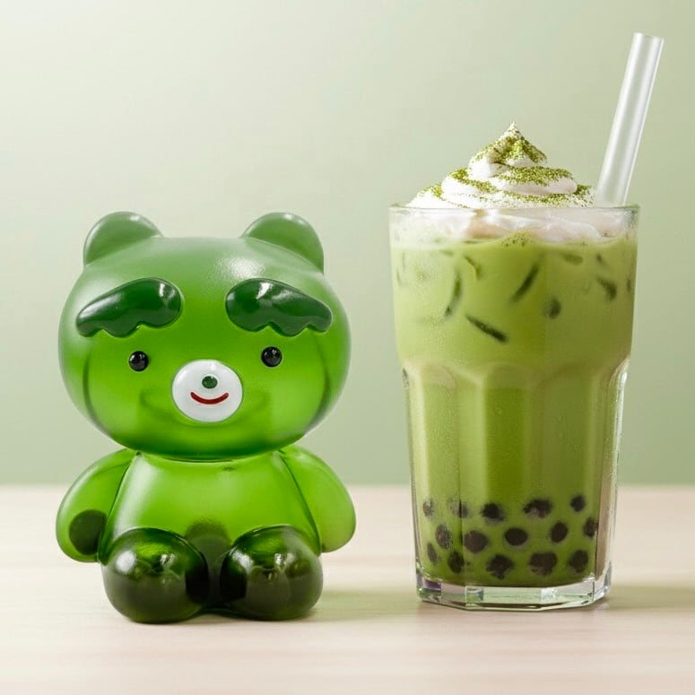 深みのあるグリーンとほんのり甘さを感じさせるデザインは、まるで本物の抹茶タピを手に取ったような仕上がりです。